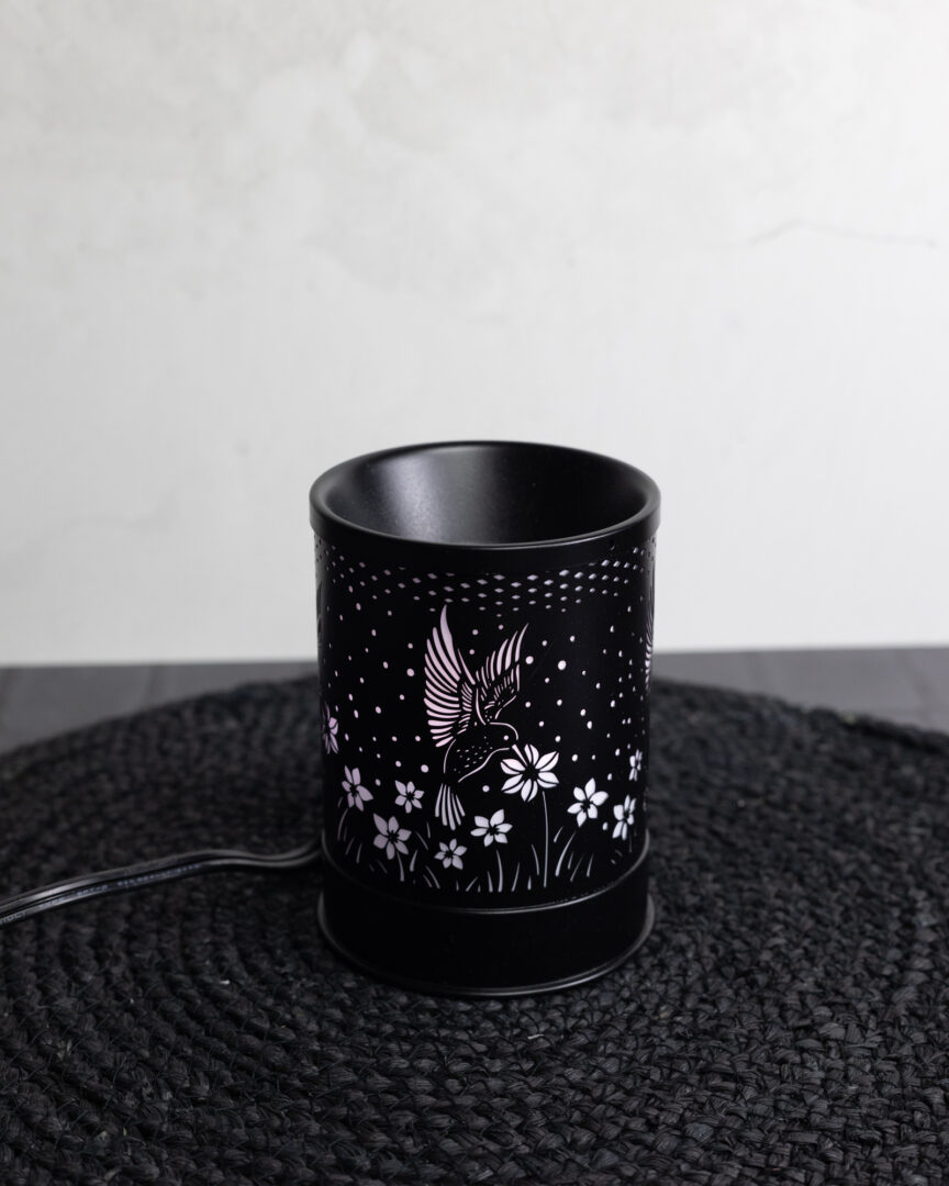 Ce brûleur de cire électrique colibri change de couleurs lorsqu'il est allumé. Il y a 7 couleurs et nous pouvons l'arrêter sur la couleur que l'on désire.