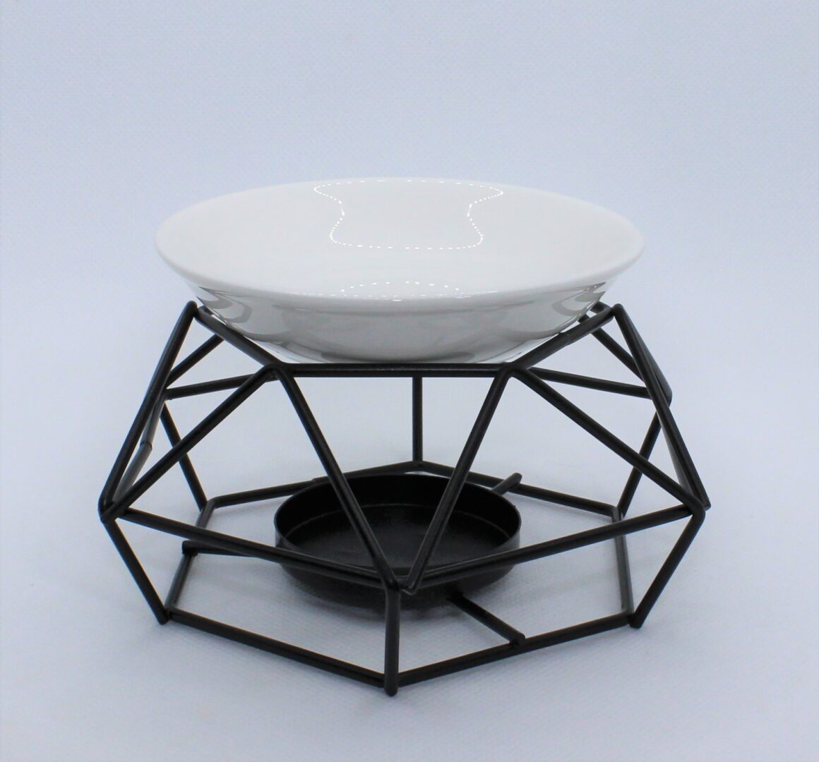Ce jolie brûleur de cire et d'huiles essentielles en fer et céramique fonctionne avec une bougie.