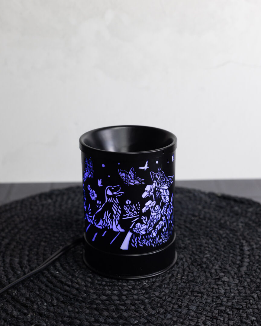 Ce brûleur de cire électrique avec un chien change de couleurs lorsqu'il est allumé. Il y a 7 couleurs et nous pouvons l'arrêter sur la couleur que l'on désire.