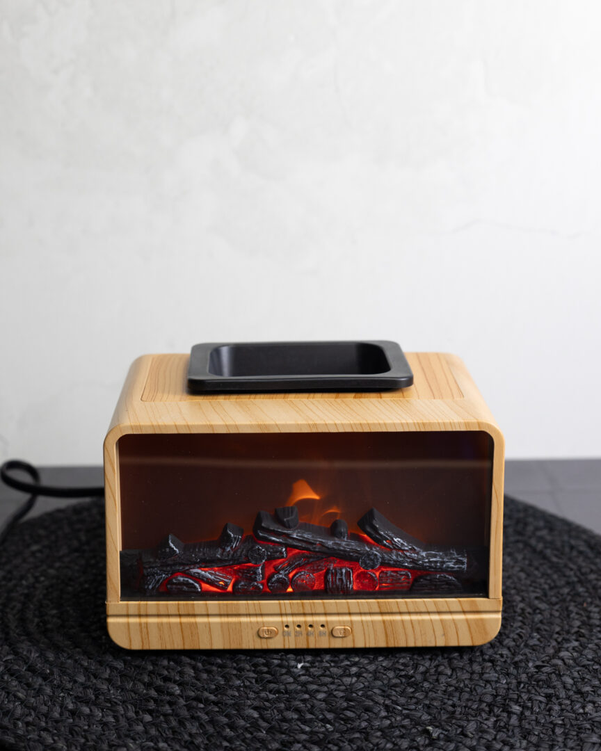 Ce brûleur de cire et HE apporte une touche d'élégance avec son fini bois, cuivre ou noir et son allure de feu de foyer, les flammes bougent lorsqu'il est allumé.