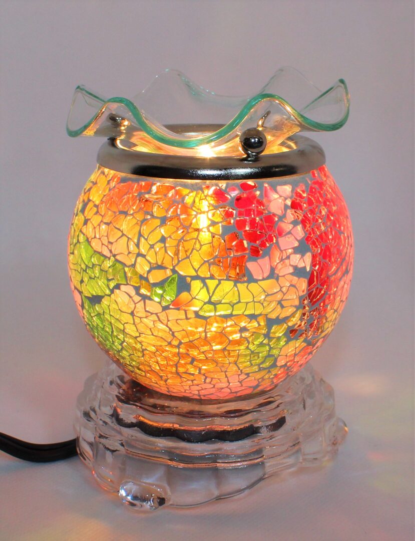 Superbe brûleur de cire en mosaïque de verre rose fait à la main. Ce brûleur est électrique et également une veilleuse pour la maison.