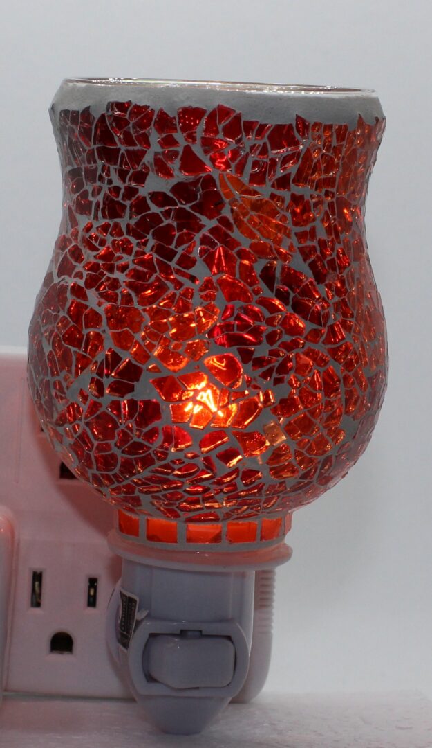 Jolie brûleur de cire mural en mosaïque de verre. Branchement ajustable à la prise murale. Idéal dans la chambre de bain, une chambre, à l'entrée de votre domicile ou encore dans le passage. La veilleuse idéal et décorative pour votre domicile.