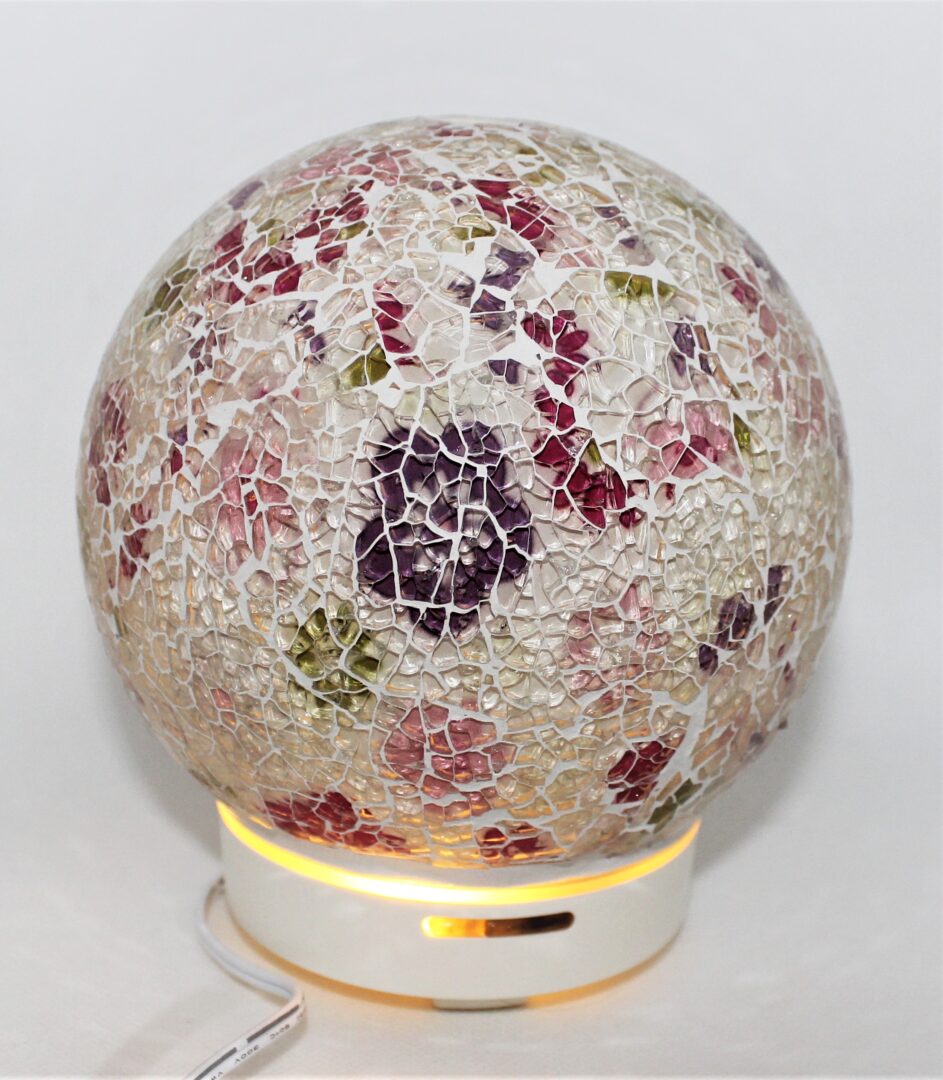 Voici un superbe diffuseur d'huiles essentielles en mosaïque de verre rose. Modèle ultrasonic humidité froide avec lumière.
